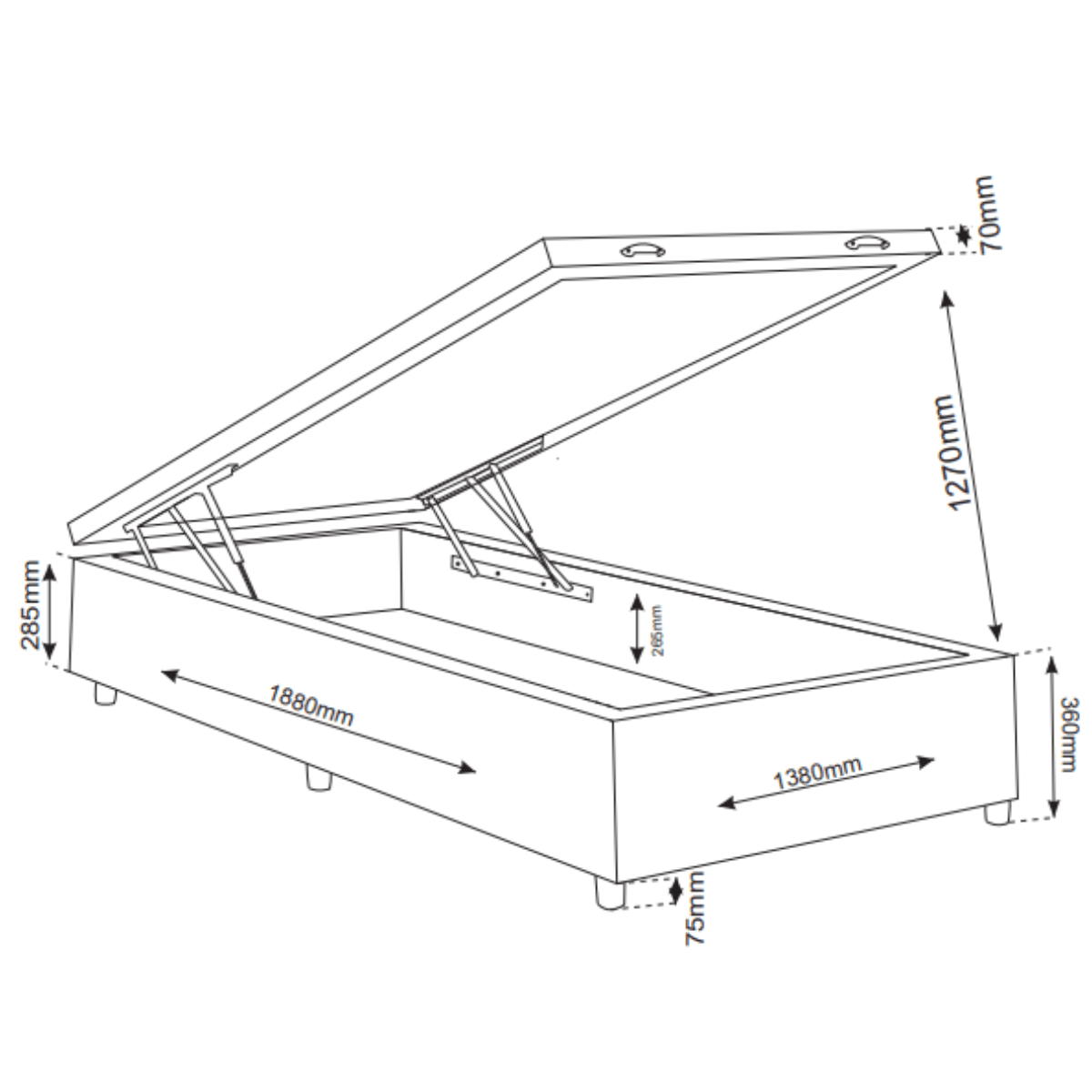 Tipo de Enchimento Base Box revestida com tecido, tampo em TNT e matelassê com 5mm de espuma
