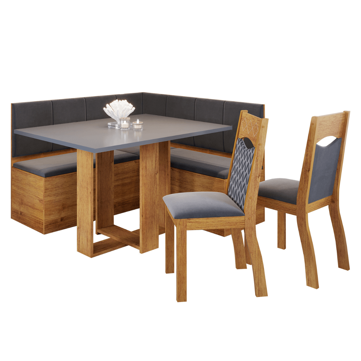 O canto alemão com baú é uma peça chave para otimizar espaços e trazer conforto à sala de jantar, perfeito para famílias que valorizam funcionalidade. Com um design acolhedor, ele oferece um local ideal para refeições, além de servir como armazenamento prático. As duas cadeiras Pietra, feitas em MDP/MDF, complementam o conjunto com um toque moderno e elegante. Seus assentos em espuma D26 garantem conforto, tornando cada refeição um momento agradável e relaxante. O canto alemão convida as interações mais próximas, promovendo conversas descontraídas entre amigos e familiares. A combinação de materiais garante durabilidade e resistência, ideal para o uso diário. Com esse móvel, a sala de jantar se torna um espaço multifuncional, onde é possível desfrutar de refeições e até de um bom livro. A estética do canto, aliada ao conforto das cadeiras, transforma o ambiente em um verdadeiro refúgio. É a escolha perfeita para quem busca unir estilo e praticidade no lar
