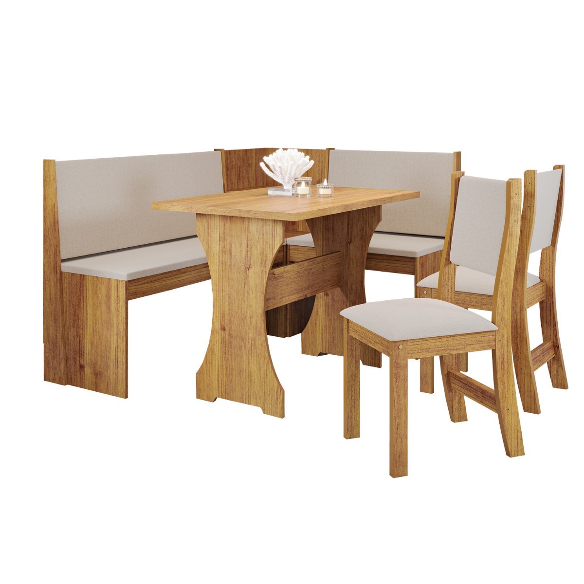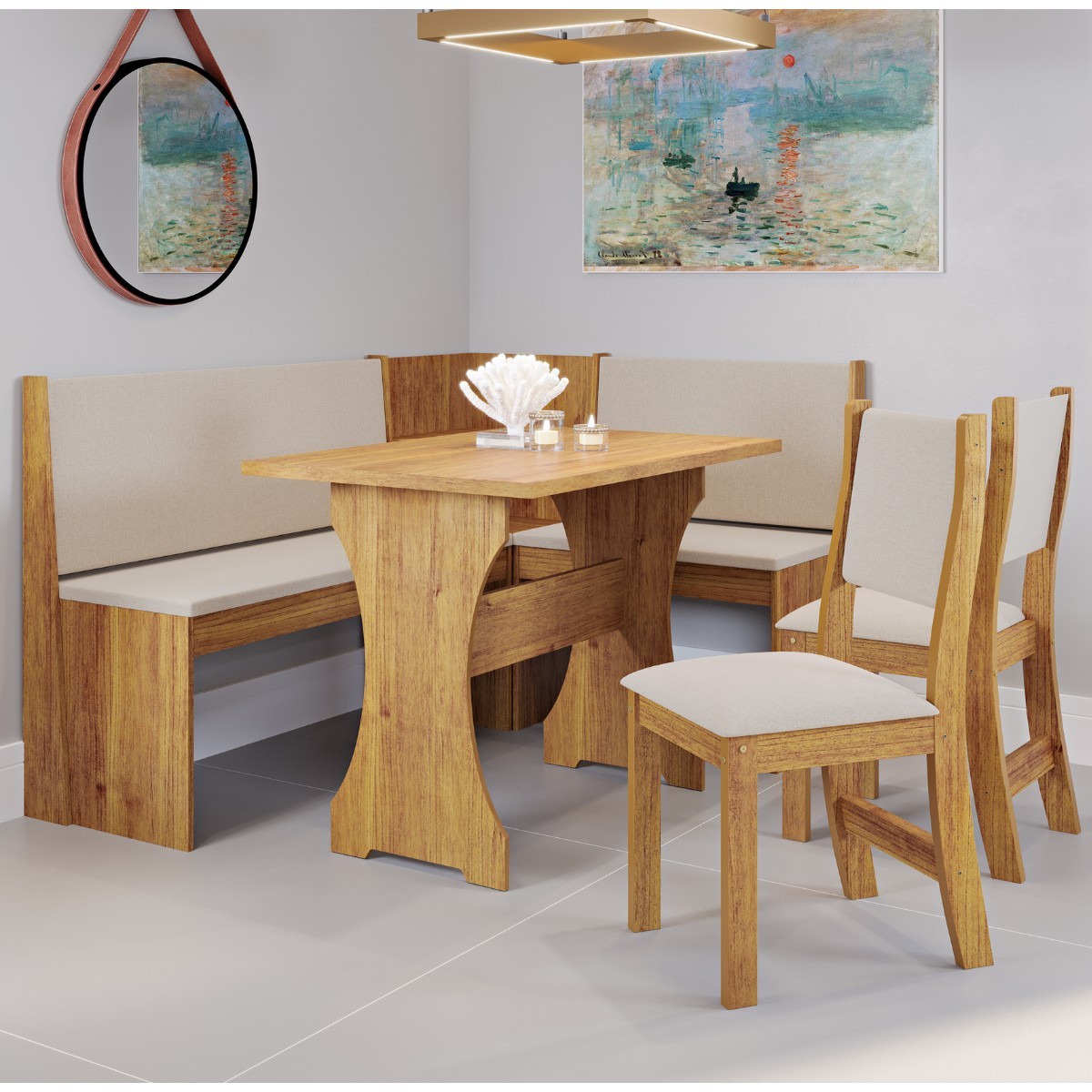 Este conjunto Canto Alemão Fritz é ideal para quem busca conforto, estilo e funcionalidade em um só móvel. Produzido em estrutura MDP/MDF, garante resistência e durabilidade para o uso diário. A mesa acompanha tampo pintado de 15mm com canto reto, que traz um toque moderno ao ambiente. O estofado do canto conta com espuma D16 no assento e encosto, oferecendo conforto leve e agradável. O revestimento em tecido linho adiciona elegância e sofisticação, com uma textura macia e visual neutro. O conjunto ainda inclui duas cadeiras modelo Sol, também em MDP/MDF, que complementam perfeitamente o visual. Os assentos das cadeiras são feitos com espuma D26, proporcionando mais firmeza e comodidade. O revestimento em linho nas cadeiras mantém a harmonia do conjunto. Ideal para cozinhas, salas de jantar ou pequenos espaços gourmet. Seu design compacto aproveita bem os cantos, otimizando o ambiente. Uma escolha perfeita para quem deseja unir praticidade e bom gosto. Sofisticação, aconchego e funcionalidade