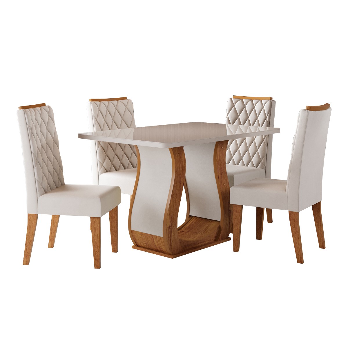 A sala de jantar Serenata é a escolha ideal para quem busca sofisticação, conforto e beleza em um único conjunto. A base da mesa é produzida em MDP e conta com estofado revestido em tecido veludo, trazendo elegância e um toque moderno ao ambiente. O tampo em MDF de 18mm possui medidas de 120x80cm e acompanha vidro de 4mm, oferecendo praticidade e um visual refinado. O conjunto inclui 4 cadeiras modelo Iza, fabricadas em MDP/MDF, garantindo resistência e durabilidade. Os encostos são decorados com bordado, adicionando charme e requinte ao design. Os assentos são compostos por espuma D26, proporcionando o conforto necessário para longos momentos à mesa. Todas as cadeiras são revestidas com tecido veludo, que combina suavidade e elegância. Perfeito para ambientes que valorizam o bom gosto. Uma excelente escolha para transformar sua sala de jantar com estilo e aconchego.