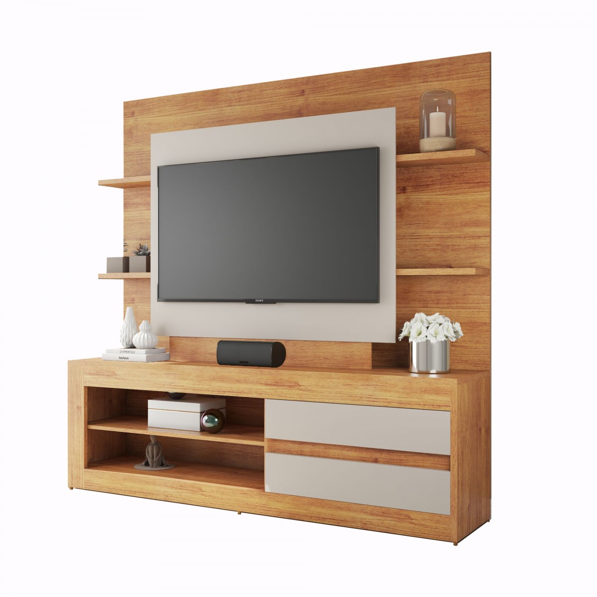 Estante para TV Até 55 Polegadas Miles 2 Gavetas 5 Prateleiras Mel/Off White - Casa Giulia