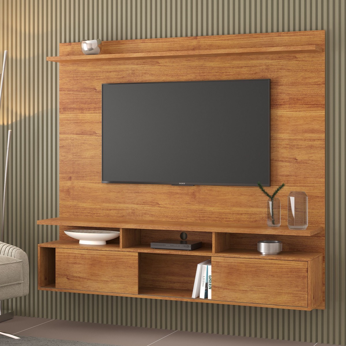 O Painel é um elemento essencial para agregar sofisticação e modernidade à sala de estar, além de ser uma solução inteligente para otimizar o espaço. É o cenário perfeito para sua televisão e para destacar objetos de decoração que expressam sua personalidade. O Painel para TV Até 65 Polegadas Roma 2 Portas 2 Prateleiras Mel é reconhecido por sua qualidade e design moderno. Produzido com materiais de qualidade, este modelo proporciona resistência e um visual atraente ao ambiente. Desenhado para acomodar televisões de diversos tamanhos, ele também inclui 3, perfeitos para organizar acessórios eletrônicos e itens decorativos. Seu estilo é realçado por detalhes finamente pensados, que adicionam um toque de requinte e ao produto. Com acabamento em pintura UV, o Painel para TV Até 65 Polegadas Roma 2 Portas 2 Prateleiras Mel assegura não apenas um visual impressionante, mas também uma superfície de fácil manutenção e longa durabilidade. Para uma sala de estar coesa e ainda mais estilosa, o Painel para TV Até 65 Polegadas Roma 2 Portas 2 Prateleiras Mel pode ser harmonizado com outros itens da coleção Casa Giulia, criando um ambiente elegante e convidativo. Assim como um rack ou poltronas da mesma linha são complementos ideais que elevarão a estética e a utilidade do seu espaço.