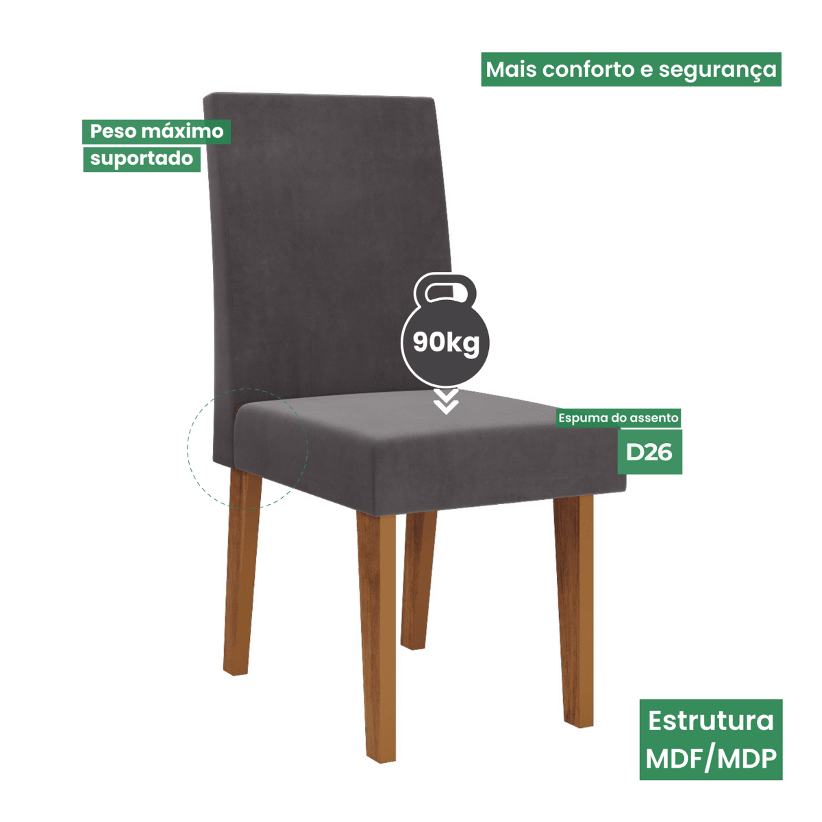 O kit com 2 cadeiras Madrid é a escolha ideal para quem deseja aliar conforto, modernidade e bom gosto. Com estrutura em MDP, oferece firmeza e excelente acabamento. Os pés em MDF reforçam a durabilidade e trazem um toque de elegância ao conjunto. O encosto liso confere um visual clean e contemporâneo, combinando com diversos estilos de ambiente. Revestidas em tecido veludo, as cadeiras proporcionam um toque suave e sofisticado. O assento com espuma D26 garante conforto para o uso no dia a dia. Versáteis, são perfeitas para salas de jantar, home offices ou recepções. Seu design é prático, funcional e elegante. Um kit que valoriza qualquer espaço com estilo.