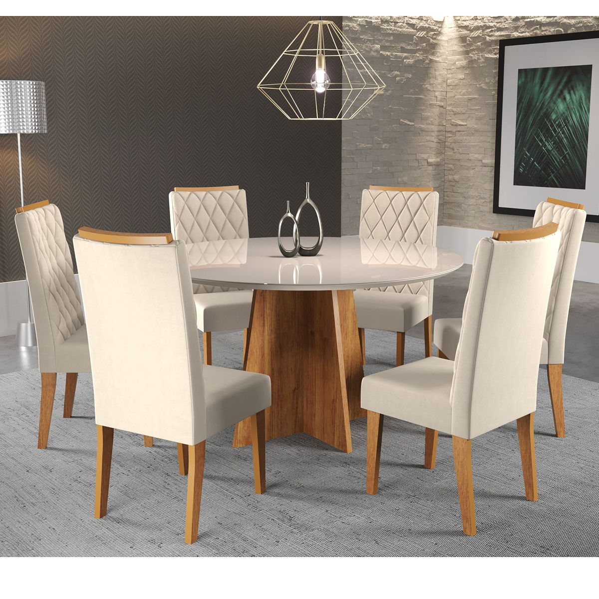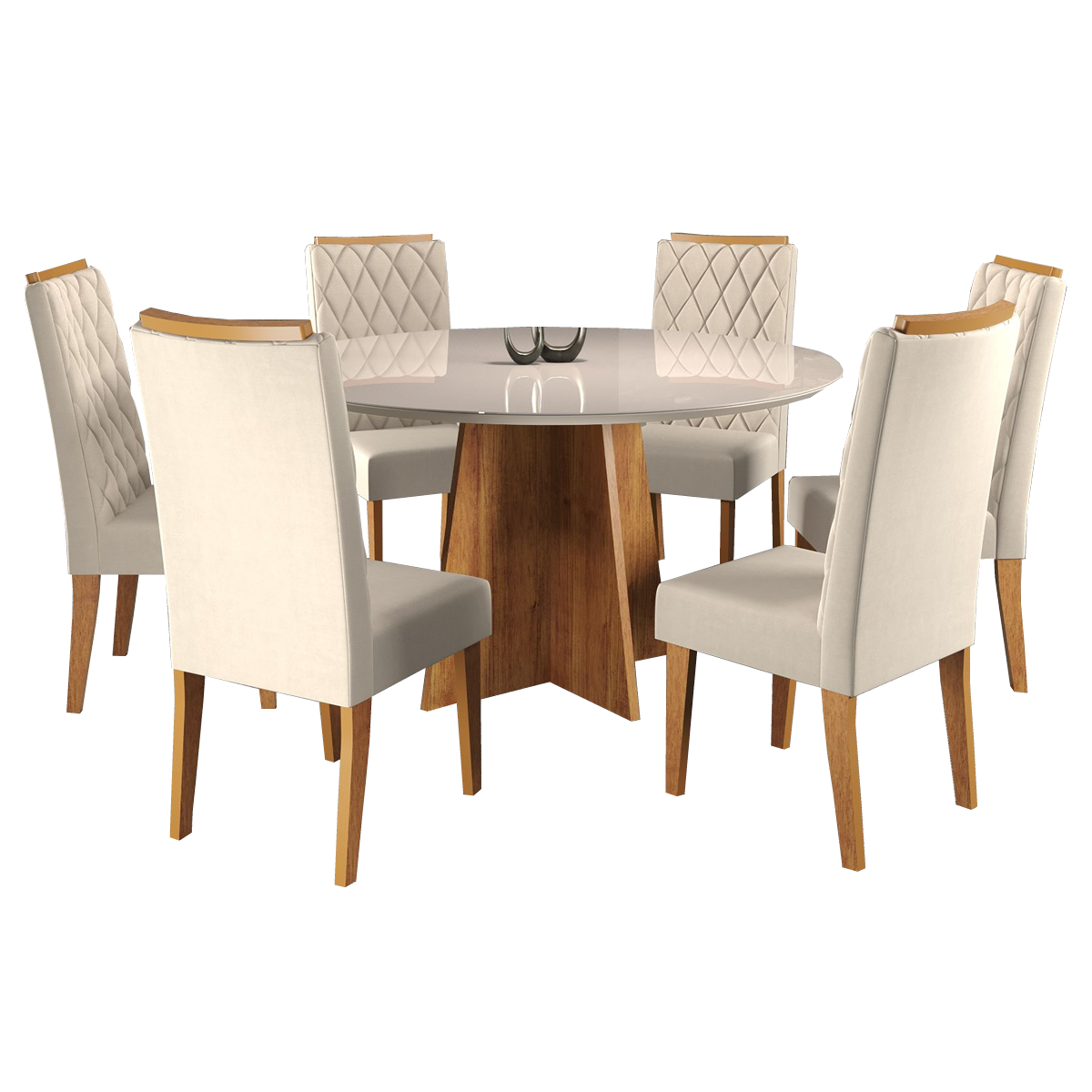 Mesa de Jantar Redonda Young com 6 Cadeiras Iza Mel/Bege/Vd Off White - Casa Giulia