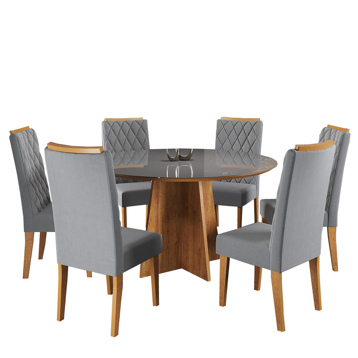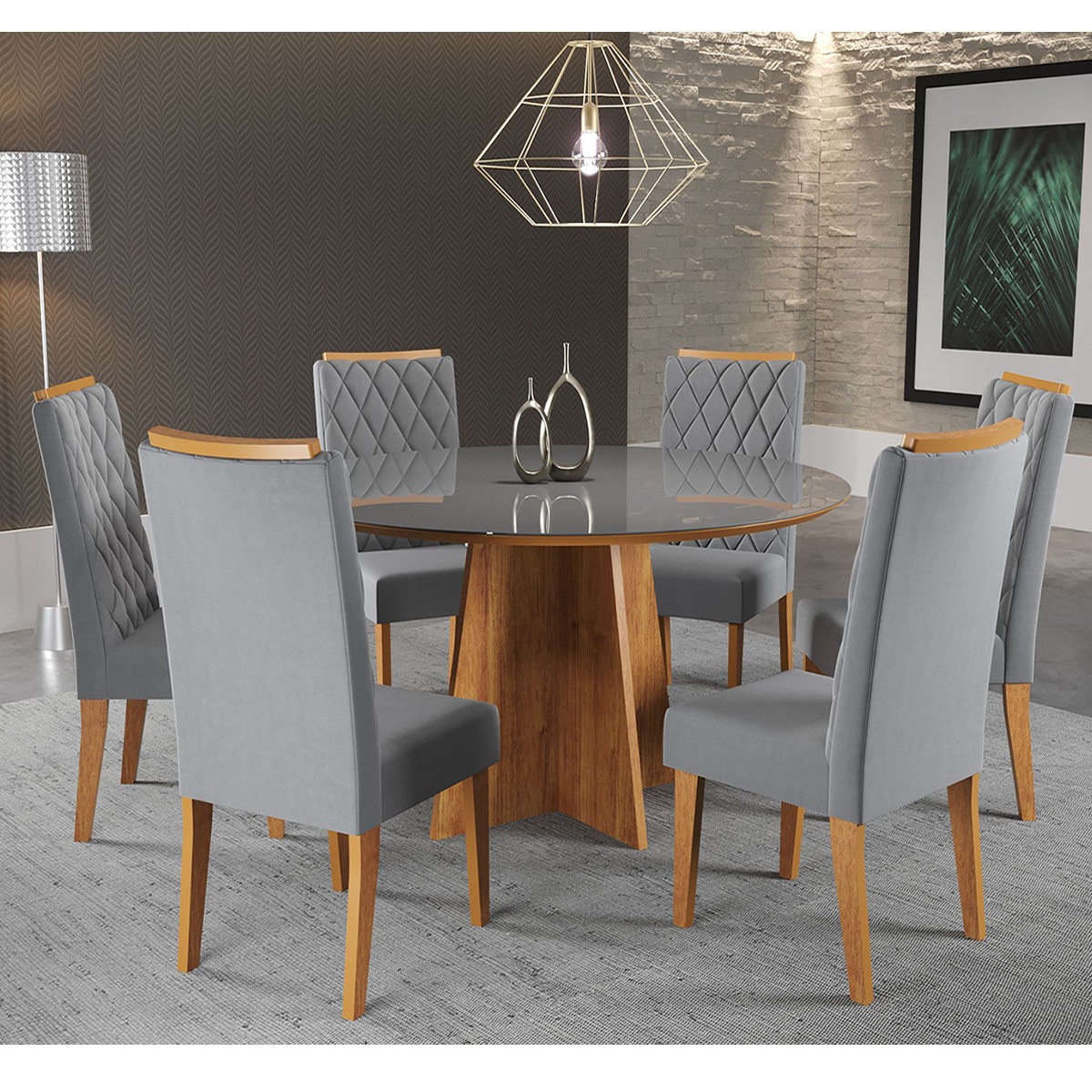 Uma mesa redonda em MDP, com tampo em MDF e vidro, é a escolha perfeita para criar um ambiente sofisticado e acolhedor na sala de jantar. Seu design circular proporciona um espaço convidativo para reuniões familiares e jantares com amigos, permitindo que todos interajam de forma descontraída. As seis cadeiras Iza, feitas em MDP com assentos em espuma D26, garantem conforto e estilo, tornando cada refeição ainda mais agradável. A combinação de materiais confere durabilidade e praticidade, ideal para o uso diário. O vidro no tampo não apenas adiciona um toque de moda, mas também facilita a limpeza, tornando o cotidiano mais simples. Com essa mesa e cadeiras, cada momento à mesa se transforma em uma experiência adequada. É o lugar perfeito para compartilhar risadas e histórias, criando laços afetivos. O conjunto se adapta a diferentes estilos de decoração, desde o moderno até o clássico. Essa mesa redonda é mais do que um móvel; é um convite à convivência e à celebração