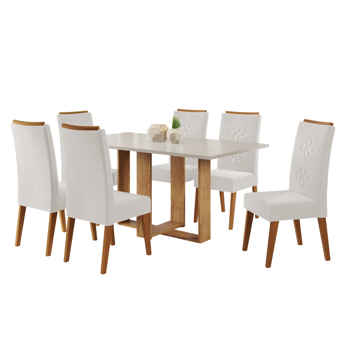 A mesa de jantar retangular, com tampo em MDP de 25mm, oferece uma combinação ideal de resistência e praticidade para qualquer ambiente. Seu design clean e funcional se adapta facilmente a diferentes estilos de decoração, proporcionando sofisticação e durabilidade. As 6 cadeiras Flora, com estrutura em madeira maciça, são o complemento perfeito, trazendo solidez e beleza natural à peça. A espuma D26, utilizada nos assentos, garante conforto e ergonomia, tornando cada refeição um momento agradável e relaxante. A madeira maciça das cadeiras, com acabamento refinado, oferece um toque rústico e ao mesmo tempo contemporâneo, que agrega charme à sala de jantar. O conjunto é perfeito para quem valoriza qualidade, conforto e estética em um único espaço. A mesa e as cadeiras possuem acabamento impecável, destacando-se pela sua robustez e visual atemporal. Ideal para famílias que buscam praticidade e elegância, este conjunto transforma qualquer ambiente em um local acolhedor e sofisticado. Com essa mesa de jantar e suas cadeiras Flora, você terá um espaço ideal para reuniões, jantares e momentos especiais