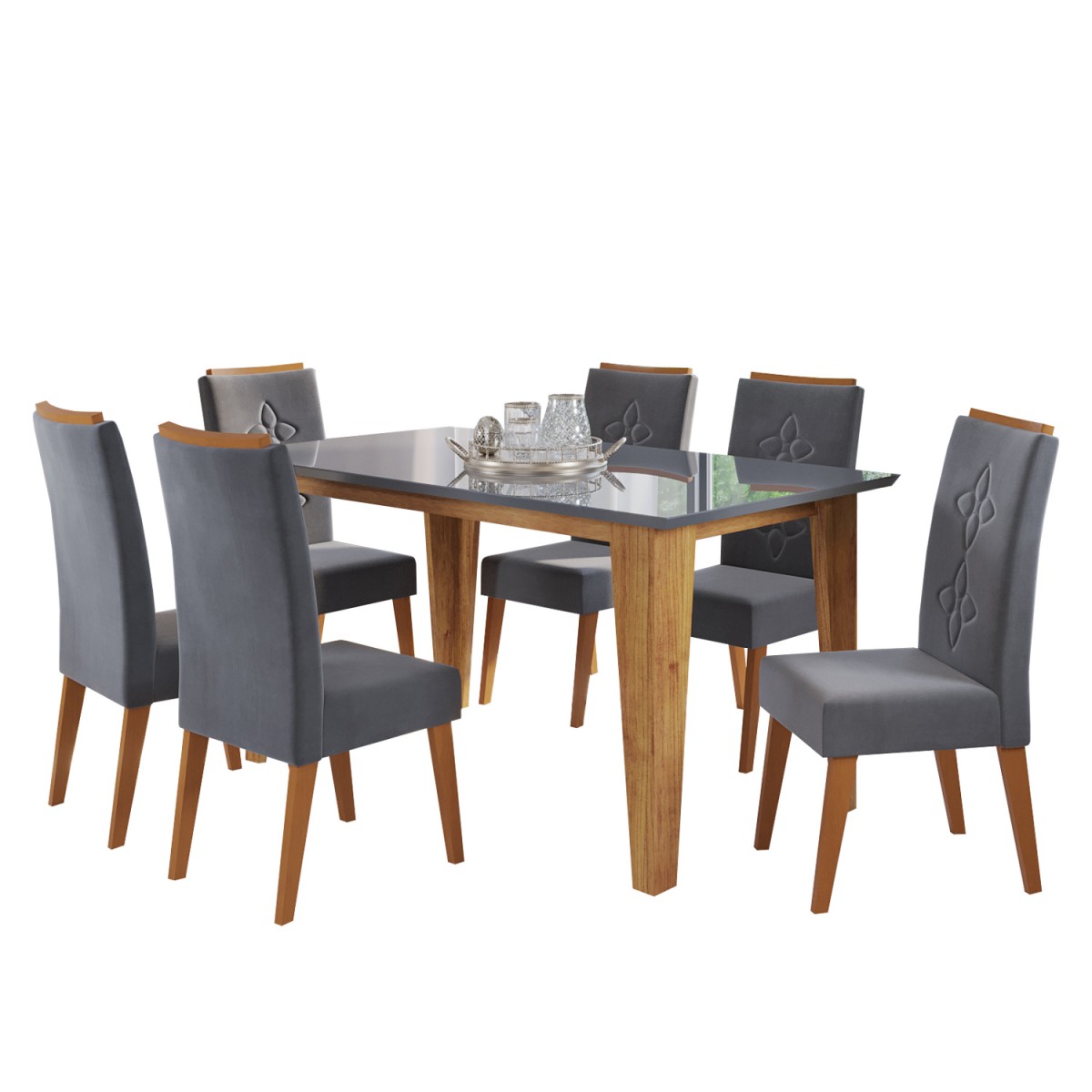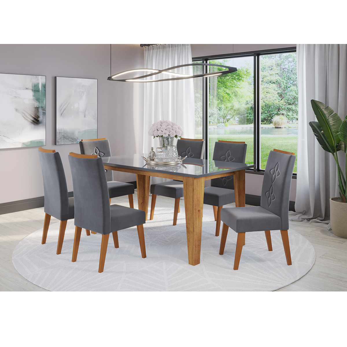 Mesa de Jantar Retangular Scala com 6 Cadeiras Flora em Madeira Maciça Mel/Grafite/V.grafite - Casa Giulia