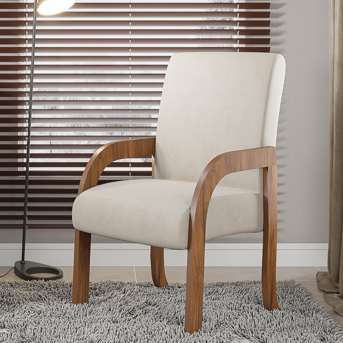 A Poltrona é uma peça-chave que une conforto e estilo, tornando-se um convite ao relaxamento em qualquer sala de estar. Ela não serve apenas como um assento adicional; é também uma expressão do seu estilo pessoal e um aceno à sofisticação na decoração do lar. A Poltrona Siggy Imbuia/Bege é sinônimo de conforto e elegância. Cada poltrona é cuidadosamente confeccionada com materiais de qualidade, assegurando uma textura visualmente agradável. Revestida com Pintura UV, cada Poltrona Siggy Imbuia/Bege promete uma experiência de assento acolhedora, com um toque suave e uma aparência luxuosa. Os detalhes do design foram escolhidos para que a Poltrona Siggy Imbuia/Bege não só complemente, mas também eleve a estética de qualquer ambiente. Além de seu papel central no conforto, a Poltrona Siggy Imbuia/Bege é versátil o suficiente para harmonizar com diversos elementos decorativos e peças de mobiliário da linha Casa Giulia. Imagine-a ao lado de uma estante cheia de livros, combinada com um conjunto aconchegante de sofás e um tapete macio, transformando sua sala em um refúgio de estilo e serenidade. Objetos decorativos que aparecem nas imagens, não acompanham o produto. A capacidade de carga considera que o peso está distribuído igualmente pela peça. As cores das imagens podem variar de acordo com as configurações do seu monitor e/ou da iluminação do ambiente onde o produto está inserido. As imagens indicam uma sugestão