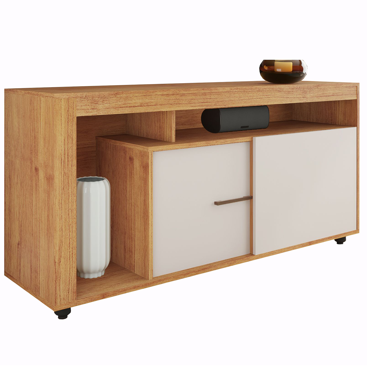 O Rack é um móvel indispensável para qualquer sala de estar, não só pela funcionalidade, mas também por agregar estilo e personalidade ao ambiente. É onde exibimos nossas televisões, organizamos dispositivos eletrônicos e, muitas vezes, exibimos itens decorativos que contam um pouco mais sobre quem somos. O Rack com Painel para Tvs de Até 50 Polegadas Melody 2 Portas Mel/Off White se destaca pela sua qualidade e acabamento refinado. Este modelo é fabricado com materiais de qualidade, uma escolha que garante durabilidade e uma estética agradável ao produto. As prateleiras são projetadas para suportar os equipamentos eletrônicos, enquanto os compartimentos são ideais para manter tudo organizado. O design é complementado com um toque de elegância e estilo.